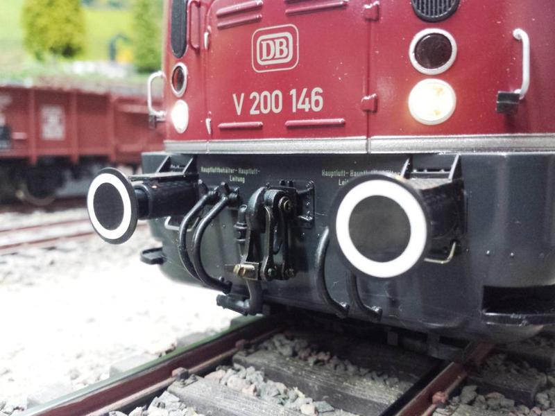 Die Aufkleber werden auf die eckigen Pufferteller von Loks und Waggons angebracht.