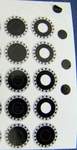 -selbstklebend, lasergeschnitten, 9 mm Durchmesser, mit Nabenausschnitt (verschieden geplottert), hohe Haftkraft und Haltbarkeit